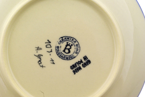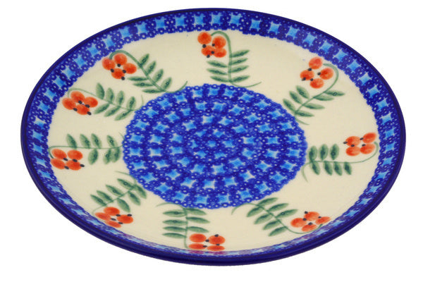 This Red Berries 7½-inch Dessert Plate was handmade and hand decorated in Boleslawiec, Poland by skilled artisans according to old traditional methods. This Polish stoneware is microwave, dishwasher, freezer, and oven safe up to 480°F. It does not contain lead or cadmium. It is part of the Red Berries Collection.