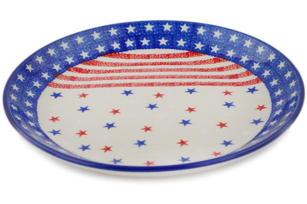 This American Stars And Stripes 8" Dessert Plate was handmade and hand decorated in Boleslawiec, Poland by skilled artisans according to old traditional methods. This Polish stoneware is microwave, dishwasher, freezer, and oven safe up to 480°F. It does not contain lead or cadmium. It is part of the American Stars And Stripes Collection.