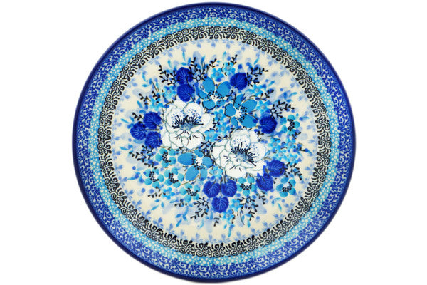 This Blue Symphony 8" Dessert Plate was handmade and hand decorated in Boleslawiec, Poland by skilled artisans according to old traditional methods. This is a Polish pottery Signature Unikat, which means that it has been hand painted with both sponges and brushes and it is signed by the artist who painted it. Unikat pieces are the most intricate works of art. Larger Unikat items take hours of very careful work to finish. This Polish stoneware is microwave, dishwasher, freezer, and oven safe up to 480°F. It does not contain lead or cadmium. It is part of the Blue Symphony Collection.