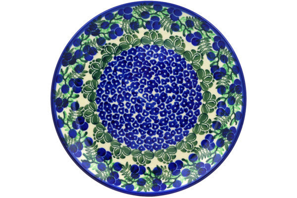 This Blueberry Fields Forever 8" Dessert Plate was handmade and hand decorated in Boleslawiec, Poland by skilled artisans according to old traditional methods. This Polish stoneware is microwave, dishwasher, freezer, and oven safe up to 480°F. It does not contain lead or cadmium. It is part of the Blueberry Fields Forever Collection.