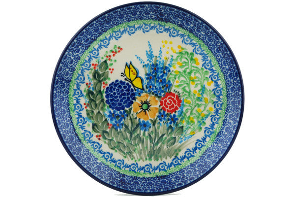 This Butterfly Garden 8" Dessert Plate was handmade and hand decorated in Boleslawiec, Poland by skilled artisans according to old traditional methods. This is a Polish pottery Signature Unikat, which means that it has been hand painted with both sponges and brushes and it is signed by the artist who painted it. Unikat pieces are the most intricate works of art. Larger Unikat items take hours of very careful work to finish. This Polish stoneware is microwave, dishwasher, freezer, and oven safe up to 480°F. It does not contain lead or cadmium. It is part of the Butterfly Garden Collection.