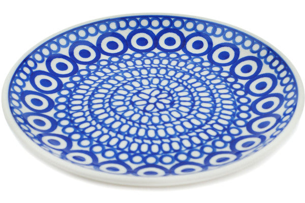 This Royal Peacock Eyes 8" Dessert Plate was handmade and hand decorated in Boleslawiec, Poland by skilled artisans according to old traditional methods. This Polish stoneware is microwave, dishwasher, freezer, and oven safe up to 480°F. It does not contain lead or cadmium. It is part of the Royal Peacock Eyes Collection.