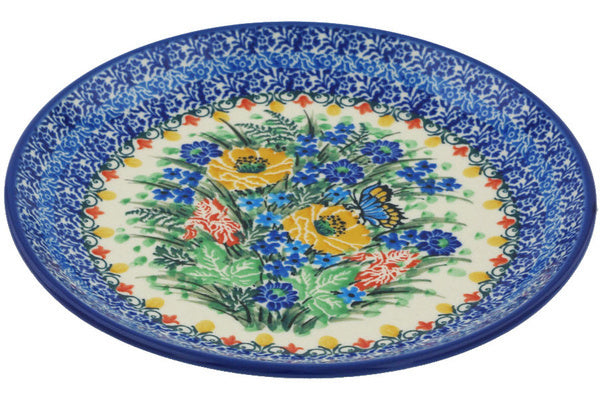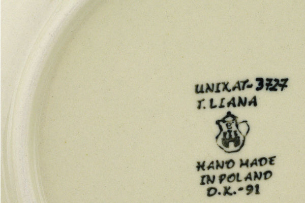This Sipping Nectar 8" Dessert Plate was handmade and hand decorated in Boleslawiec, Poland by skilled artisans according to old traditional methods. This is a Polish pottery Signature Unikat, which means that it has been hand painted with both sponges and brushes and it is signed by the artist who painted it. Unikat pieces are the most intricate works of art. Larger Unikat items take hours of very careful work to finish. This Polish stoneware is microwave, dishwasher, freezer, and oven safe up to 480°F. It does not contain lead or cadmium. It is part of the Sipping Nectar Collection.