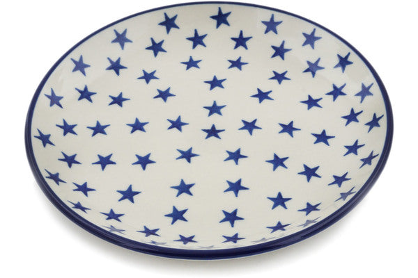 This Starburst Americana 8" Dessert Plate was handmade and hand decorated in Boleslawiec, Poland by skilled artisans according to old traditional methods. This Polish stoneware is microwave, dishwasher, freezer, and oven safe up to 480°F. It does not contain lead or cadmium. It is part of the Starburst Americana Collection.