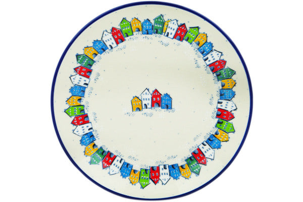 This Village In Spectrum 8" Dessert Plate was handmade and hand decorated in Boleslawiec, Poland by skilled artisans according to old traditional methods. This is a Polish pottery Signature Unikat, which means that it has been hand painted with both sponges and brushes and it is signed by the artist who painted it. Unikat pieces are the most intricate works of art. Larger Unikat items take hours of very careful work to finish. This Polish stoneware is microwave, dishwasher, freezer, and oven safe up to 480°F. It does not contain lead or cadmium. It is part of the Village In Spectrum Collection.