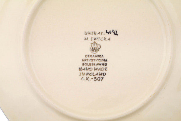 This Wild Flower 8" Dessert Plate was handmade and hand decorated in Boleslawiec, Poland by skilled artisans according to old traditional methods. This is a Polish pottery Signature Unikat, which means that it has been hand painted with both sponges and brushes and it is signed by the artist who painted it. Unikat pieces are the most intricate works of art. Larger Unikat items take hours of very careful work to finish. This Polish stoneware is microwave, dishwasher, freezer, and oven safe up to 480°F. It does not contain lead or cadmium. It is part of the Wild Flower Collection.