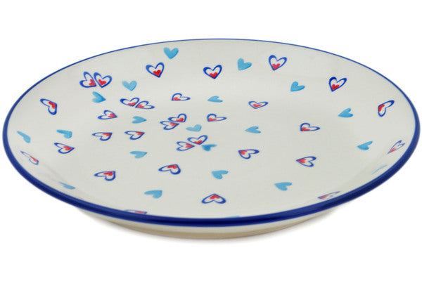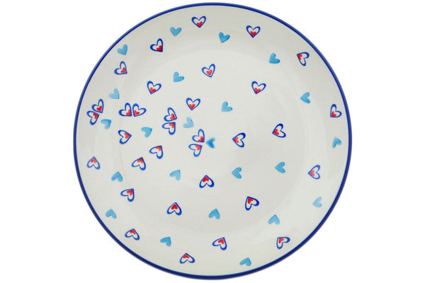 This Dancing Hearts 10½-inch Dinner Plate was handmade and hand decorated in Boleslawiec, Poland by skilled artisans according to old traditional methods. This Polish stoneware is microwave, dishwasher, freezer, and oven safe up to 480°F. It does not contain lead or cadmium. It is part of the Dancing Hearts Collection.