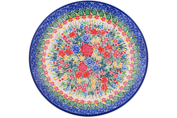 This Red Bouquet 10½-inch Dinner Plate was handmade and hand decorated in Boleslawiec, Poland by skilled artisans according to old traditional methods. This is a Polish pottery Signature Unikat, which means that it has been hand painted with both sponges and brushes and it is signed by the artist who painted it. Unikat pieces are the most intricate works of art. Larger Unikat items take hours of very careful work to finish. This Polish stoneware is microwave, dishwasher, freezer, and oven safe up to 480°F. It does not contain lead or cadmium. It is part of the Red Bouquet Collection.