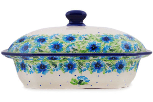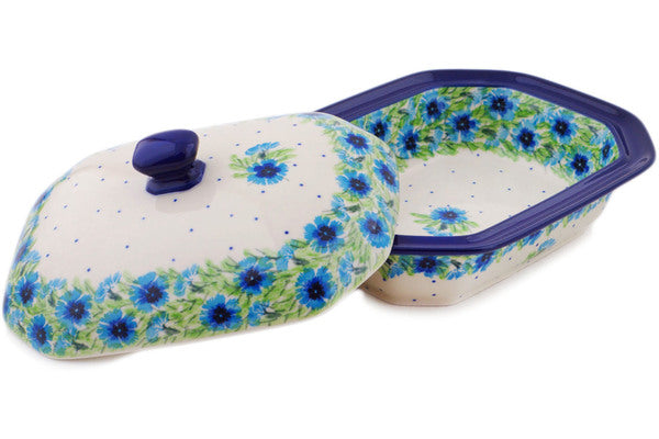 This Springing Into Spring 8" Dish with Cover was handmade and hand decorated in Boleslawiec, Poland by skilled artisans according to old traditional methods. This is a Polish pottery Signature Unikat, which means that it has been hand painted with both sponges and brushes and it is signed by the artist who painted it. Unikat pieces are the most intricate works of art. Larger Unikat items take hours of very careful work to finish. This Polish stoneware is microwave, dishwasher, freezer, and oven safe up to 480°F. It does not contain lead or cadmium. It is part of the Springing Into Spring Collection.