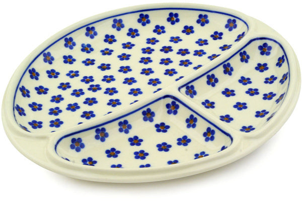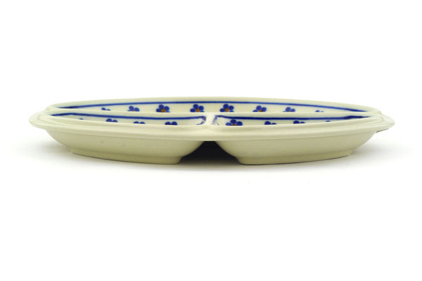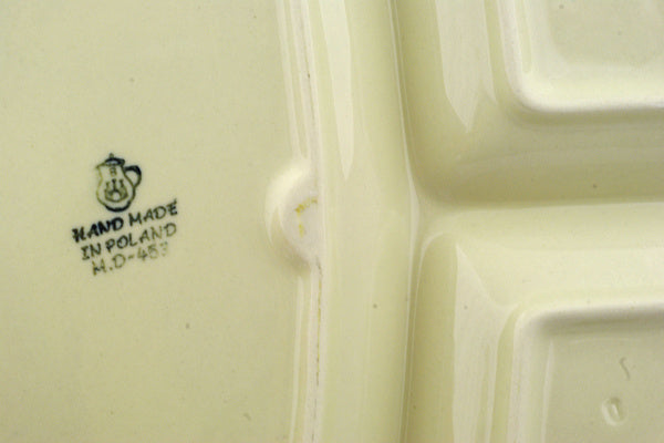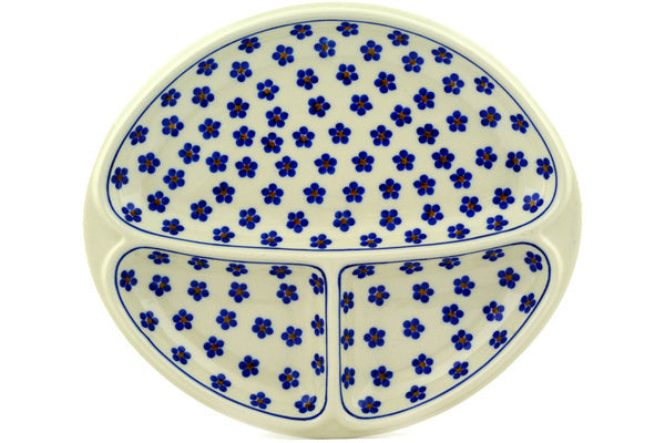 This Daisy Dots 11" Divided Dish was handmade and hand decorated in Boleslawiec, Poland by skilled artisans according to old traditional methods. This Polish stoneware is microwave, dishwasher, freezer, and oven safe up to 480°F. It does not contain lead or cadmium. It is part of the Daisy Dots Collection.