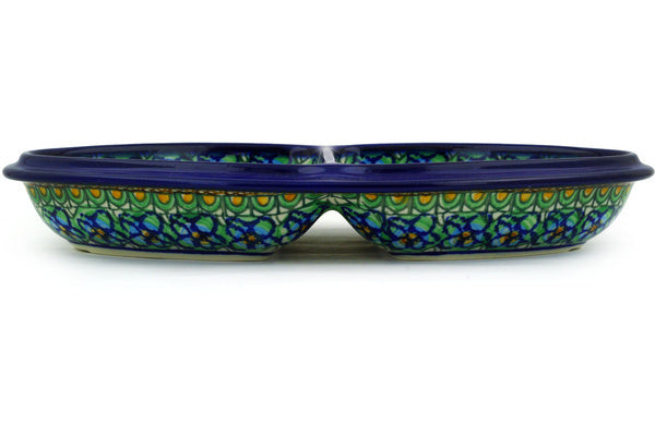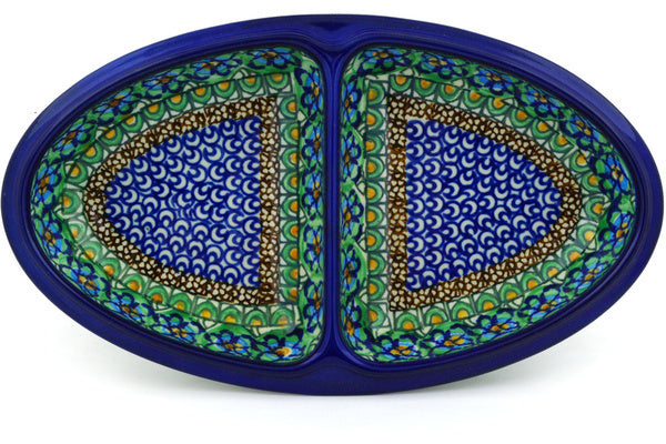 This Mardi Gras 11" Divided Dish was handmade and hand decorated in Boleslawiec, Poland by skilled artisans according to old traditional methods. This is a Polish pottery Signature Unikat, which means that it has been hand painted with both sponges and brushes and it is signed by the artist who painted it. Unikat pieces are the most intricate works of art. Larger Unikat items take hours of very careful work to finish. This Polish stoneware is microwave, dishwasher, freezer, and oven safe up to 480°F. It does not contain lead or cadmium. It is part of the Mardi Gras Collection.