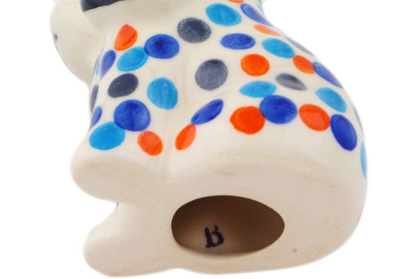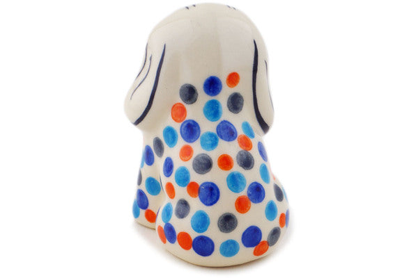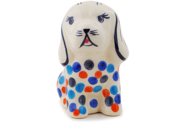 This Polka Dot Frenzy 4" Dog Figurine was handmade and hand decorated in Boleslawiec, Poland by skilled artisans according to old traditional methods. This Polish stoneware is microwave, dishwasher, freezer, and oven safe up to 480°F. It does not contain lead or cadmium. It is part of the Polka Dot Frenzy Collection.