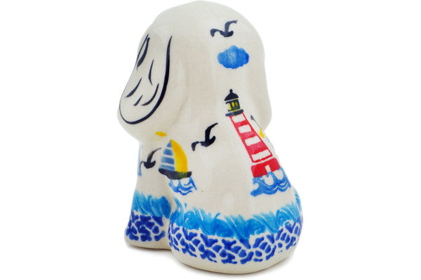 This Sea Sights 4" Dog Figurine was handmade and hand decorated in Boleslawiec, Poland by skilled artisans according to old traditional methods. This is a Polish pottery Signature Unikat, which means that it has been hand painted with both sponges and brushes and it is signed by the artist who painted it. Unikat pieces are the most intricate works of art. Larger Unikat items take hours of very careful work to finish. This Polish stoneware is microwave, dishwasher, freezer, and oven safe up to 480°F. It does not contain lead or cadmium. It is part of the Sea Sights Collection.