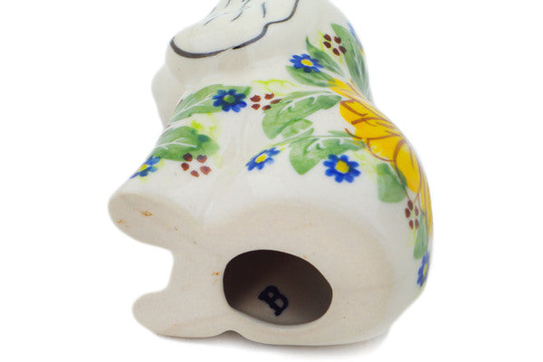 This Sunflower Yellow Petal Bliss 4" Dog Figurine was handmade and hand decorated in Boleslawiec, Poland by skilled artisans according to old traditional methods. This is a Polish pottery Signature Unikat, which means that it has been hand painted with both sponges and brushes and it is signed by the artist who painted it. Unikat pieces are the most intricate works of art. Larger Unikat items take hours of very careful work to finish. This Polish stoneware is microwave, dishwasher, freezer, and oven safe up to 480°F. It does not contain lead or cadmium. It is part of the Sunflower Yellow Petal Bliss Collection.