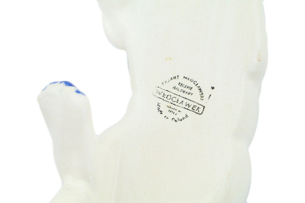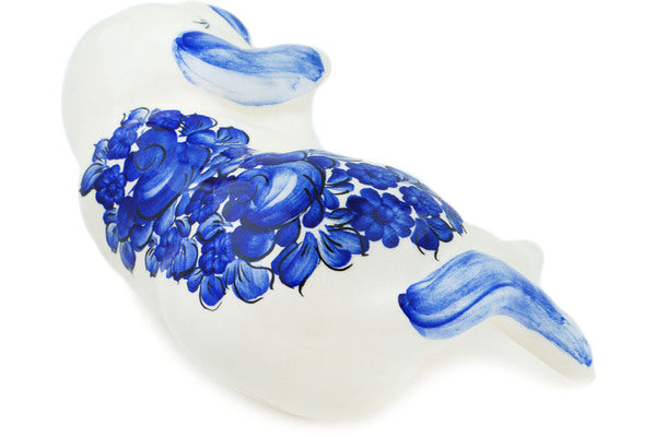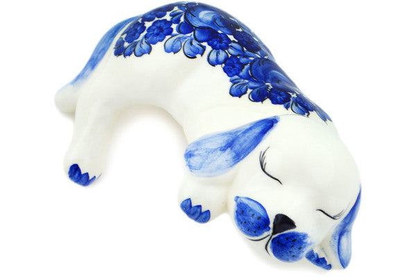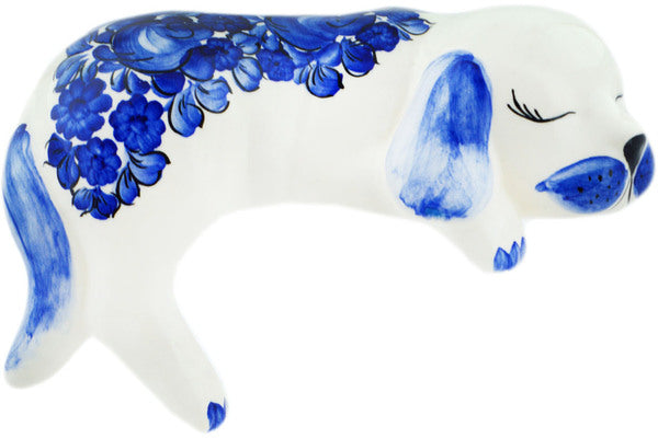 This Lagoon 8" Dog Figurine was handmade and hand decorated in Boleslawiec, Poland by skilled artisans according to old traditional methods. This Polish stoneware is microwave, dishwasher, freezer, and oven safe up to 480°F. It does not contain lead or cadmium. It is part of the Lagoon Collection.