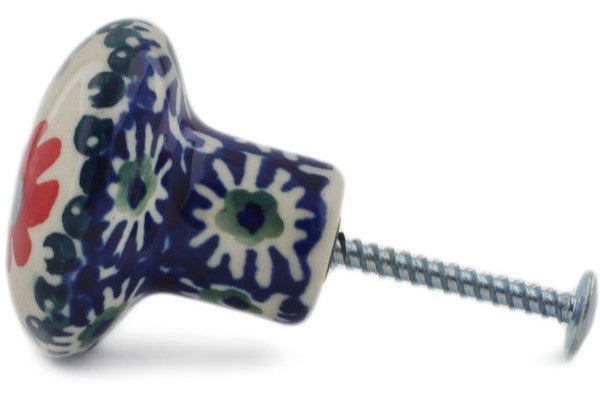 This Full Blossom 1" Drawer knob 1-1/2 inch was handmade and hand decorated in Boleslawiec, Poland by skilled artisans according to old traditional methods. This Polish stoneware is microwave, dishwasher, freezer, and oven safe up to 480°F. It does not contain lead or cadmium. It is part of the Full Blossom Collection.