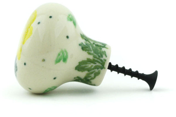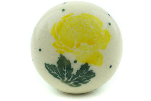 This Yellow Rose 1" Drawer knob 1-1/2 inch was handmade and hand decorated in Boleslawiec, Poland by skilled artisans according to old traditional methods. This Polish stoneware is microwave, dishwasher, freezer, and oven safe up to 480°F. It does not contain lead or cadmium. It is part of the Yellow Rose Collection.