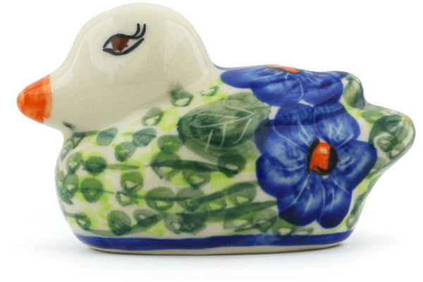 This Brilliant Butterfly Popp 4" Duck Figurine was handmade and hand decorated in Boleslawiec, Poland by skilled artisans according to old traditional methods. This is a Polish pottery Signature Unikat, which means that it has been hand painted with both sponges and brushes and it is signed by the artist who painted it. Unikat pieces are the most intricate works of art. Larger Unikat items take hours of very careful work to finish. This Polish stoneware is microwave, dishwasher, freezer, and oven safe up to 480°F. It does not contain lead or cadmium. It is part of the Brilliant Butterfly Popp Collection.