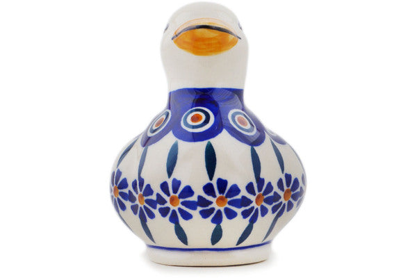 This Peacock 4" Duck Figurine was handmade and hand decorated in Boleslawiec, Poland by skilled artisans according to old traditional methods. This Polish stoneware is microwave, dishwasher, freezer, and oven safe up to 480°F. It does not contain lead or cadmium. It is part of the Peacock Collection.