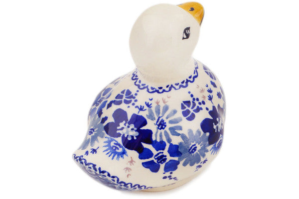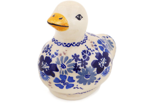 This Periwinkle Sweetness 4" Duck Figurine was handmade and hand decorated in Boleslawiec, Poland by skilled artisans according to old traditional methods. This is a Polish pottery Signature Unikat, which means that it has been hand painted with both sponges and brushes and it is signed by the artist who painted it. Unikat pieces are the most intricate works of art. Larger Unikat items take hours of very careful work to finish. This Polish stoneware is microwave, dishwasher, freezer, and oven safe up to 480°F. It does not contain lead or cadmium. It is part of the Periwinkle Sweetness Collection.