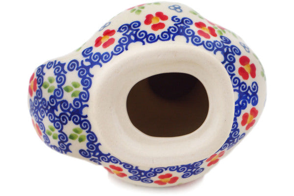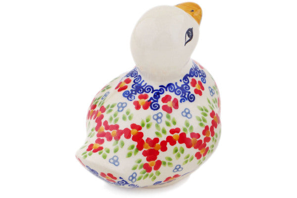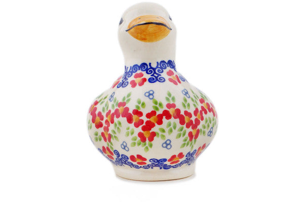 This Red Chains 4" Duck Figurine was handmade and hand decorated in Boleslawiec, Poland by skilled artisans according to old traditional methods. This is a Polish pottery Signature Unikat, which means that it has been hand painted with both sponges and brushes and it is signed by the artist who painted it. Unikat pieces are the most intricate works of art. Larger Unikat items take hours of very careful work to finish. This Polish stoneware is microwave, dishwasher, freezer, and oven safe up to 480°F. It does not contain lead or cadmium. It is part of the Red Chains Collection.