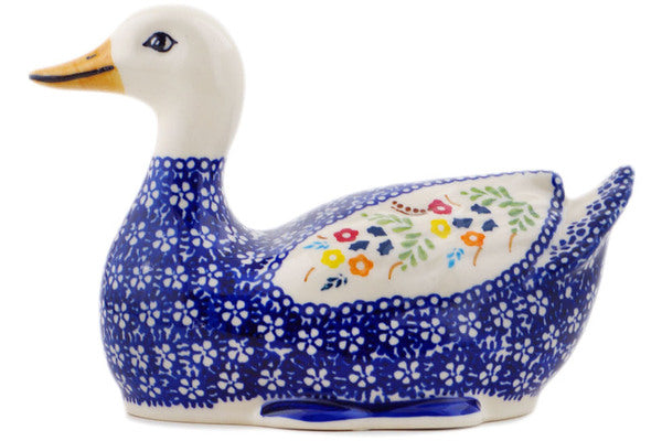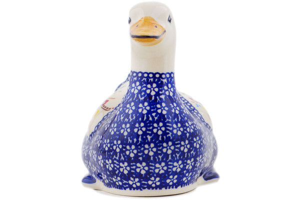 This Rainbow Delight 7" Duck Figurine was handmade and hand decorated in Boleslawiec, Poland by skilled artisans according to old traditional methods. This is a Polish pottery Signature Unikat, which means that it has been hand painted with both sponges and brushes and it is signed by the artist who painted it. Unikat pieces are the most intricate works of art. Larger Unikat items take hours of very careful work to finish. This Polish stoneware is microwave, dishwasher, freezer, and oven safe up to 480°F. It does not contain lead or cadmium. It is part of the Rainbow Delight Collection.