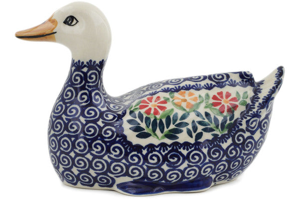 This Wave Of Flowers 7" Duck Figurine was handmade and hand decorated in Boleslawiec, Poland by skilled artisans according to old traditional methods. This Polish stoneware is microwave, dishwasher, freezer, and oven safe up to 480°F. It does not contain lead or cadmium. It is part of the Wave Of Flowers Collection.