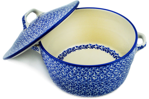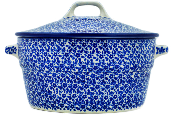 This Choppy Waters 8-inch Dutch Oven was handmade and hand decorated in Boleslawiec, Poland by skilled artisans according to old traditional methods. This Polish stoneware is microwave, dishwasher, freezer, and oven safe up to 480°F. It does not contain lead or cadmium. It is part of the Choppy Waters Collection.