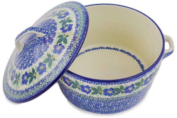 This Infinity Flower 8-inch Dutch Oven was handmade and hand decorated in Boleslawiec, Poland by skilled artisans according to old traditional methods. This Polish stoneware is microwave, dishwasher, freezer, and oven safe up to 480°F. It does not contain lead or cadmium. It is part of the Infinity Flower Collection.