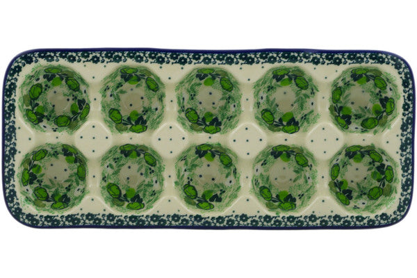 This Daisies Wreath 11" Egg Crate was handmade and hand decorated in Boleslawiec, Poland by skilled artisans according to old traditional methods. This is a Polish pottery Signature Unikat, which means that it has been hand painted with both sponges and brushes and it is signed by the artist who painted it. Unikat pieces are the most intricate works of art. Larger Unikat items take hours of very careful work to finish. This Polish stoneware is microwave, dishwasher, freezer, and oven safe up to 480°F. It does not contain lead or cadmium. It is part of the Daisies Wreath Collection.
