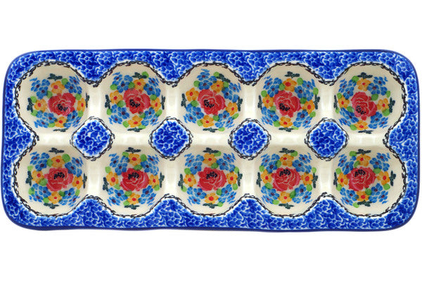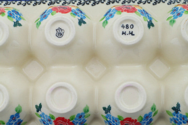 This Floweret 11" Egg Crate was handmade and hand decorated in Boleslawiec, Poland by skilled artisans according to old traditional methods. This Polish stoneware is microwave, dishwasher, freezer, and oven safe up to 480°F. It does not contain lead or cadmium. It is part of the Floweret Collection.