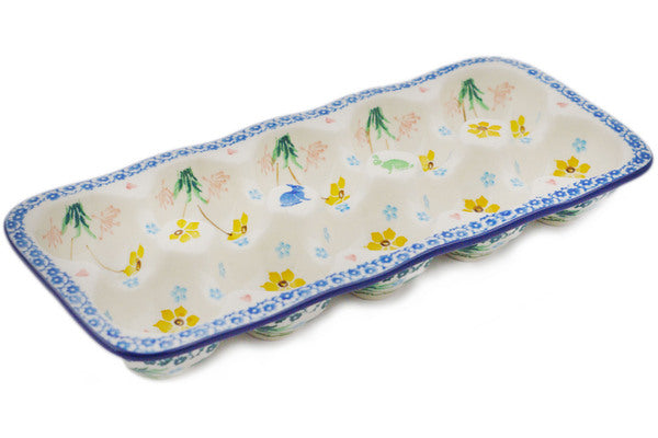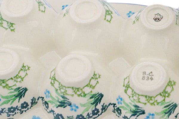 This Hopping In Love 11" Egg Crate was handmade and hand decorated in Boleslawiec, Poland by skilled artisans according to old traditional methods. This Polish stoneware is microwave, dishwasher, freezer, and oven safe up to 480°F. It does not contain lead or cadmium. It is part of the Hopping In Love Collection.