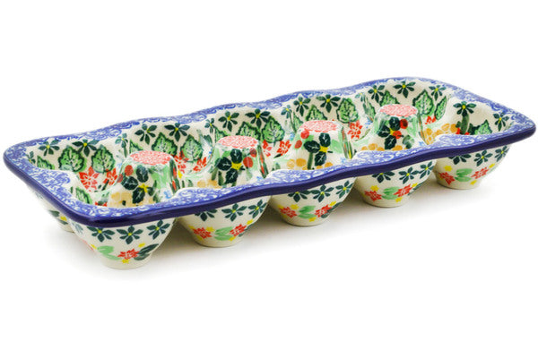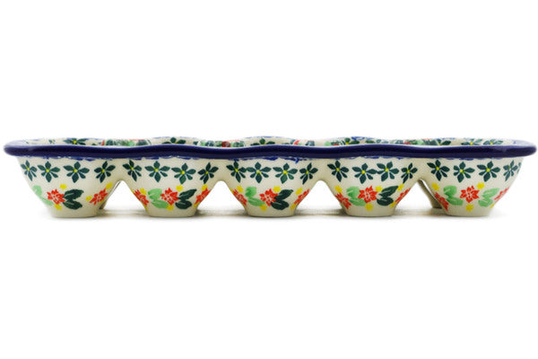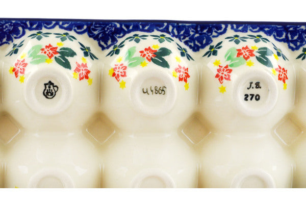 This Red Bouquet 11" Egg Crate was handmade and hand decorated in Boleslawiec, Poland by skilled artisans according to old traditional methods. This is a Polish pottery Signature Unikat, which means that it has been hand painted with both sponges and brushes and it is signed by the artist who painted it. Unikat pieces are the most intricate works of art. Larger Unikat items take hours of very careful work to finish. This Polish stoneware is microwave, dishwasher, freezer, and oven safe up to 480°F. It does not contain lead or cadmium. It is part of the Red Bouquet Collection.