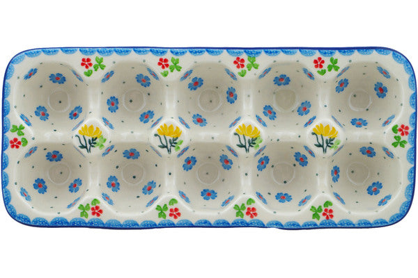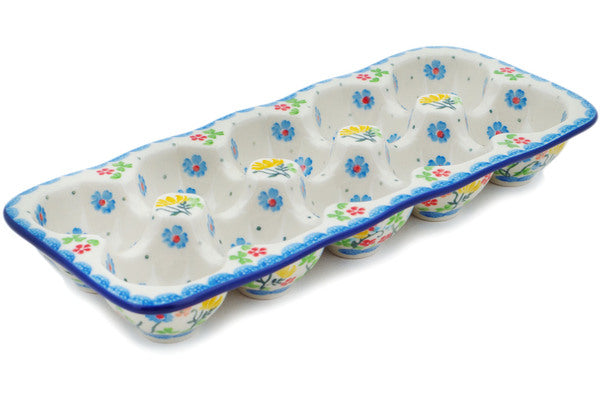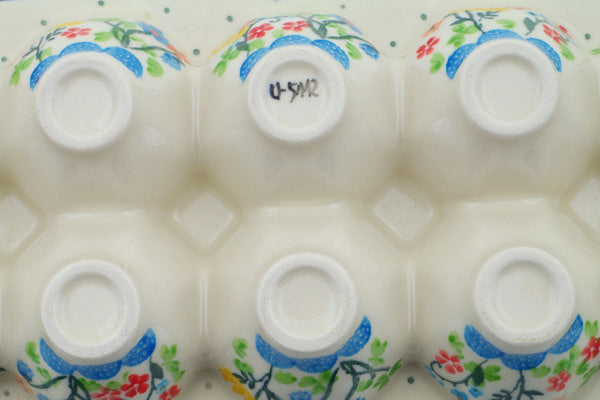 This Spring Sights 11" Egg Crate was handmade and hand decorated in Boleslawiec, Poland by skilled artisans according to old traditional methods. This is a Polish pottery Signature Unikat, which means that it has been hand painted with both sponges and brushes and it is signed by the artist who painted it. Unikat pieces are the most intricate works of art. Larger Unikat items take hours of very careful work to finish. This Polish stoneware is microwave, dishwasher, freezer, and oven safe up to 480°F. It does not contain lead or cadmium. It is part of the Spring Sights Collection.
