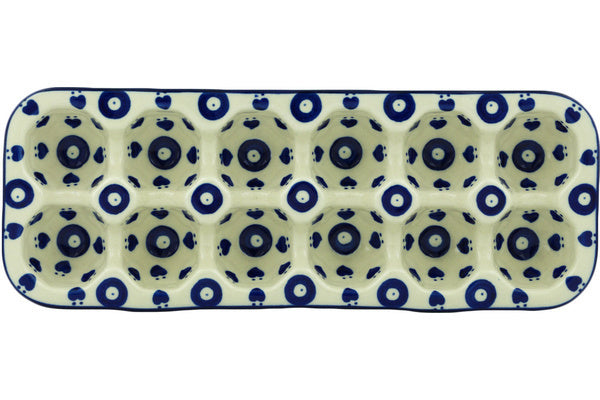 This Bleeding Heart Peacock 13" Egg Crate was handmade and hand decorated in Boleslawiec, Poland by skilled artisans according to old traditional methods. This Polish stoneware is microwave, dishwasher, freezer, and oven safe up to 480°F. It does not contain lead or cadmium. It is part of the Bleeding Heart Peacock Collection.