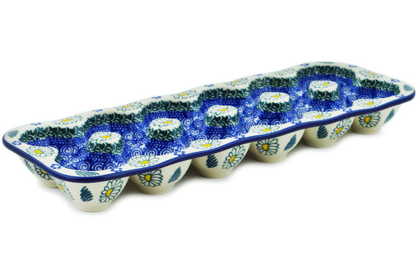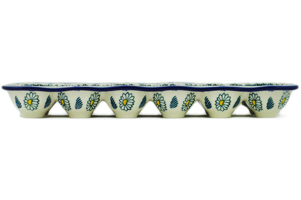This Crazy Daisy 13" Egg Crate was handmade and hand decorated in Boleslawiec, Poland by skilled artisans according to old traditional methods. This Polish stoneware is microwave, dishwasher, freezer, and oven safe up to 480°F. It does not contain lead or cadmium. It is part of the Crazy Daisy Collection.