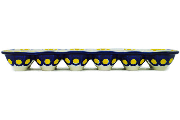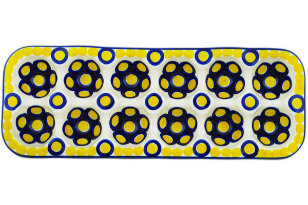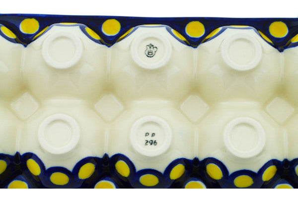 This Yellow Dots 13" Egg Crate was handmade and hand decorated in Boleslawiec, Poland by skilled artisans according to old traditional methods. This Polish stoneware is microwave, dishwasher, freezer, and oven safe up to 480°F. It does not contain lead or cadmium. It is part of the Yellow Dots Collection.