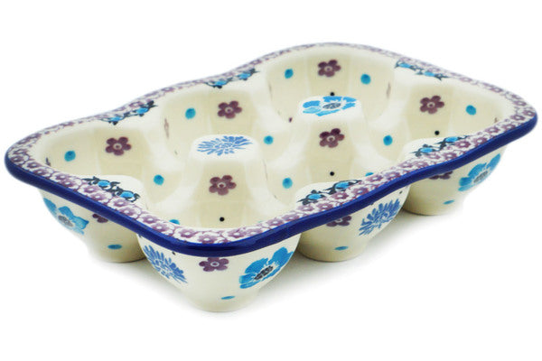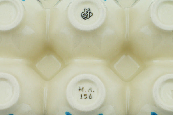 This Blooming Blues 7" Egg Crate was handmade and hand decorated in Boleslawiec, Poland by skilled artisans according to old traditional methods. This Polish stoneware is microwave, dishwasher, freezer, and oven safe up to 480°F. It does not contain lead or cadmium. It is part of the Blooming Blues Collection.