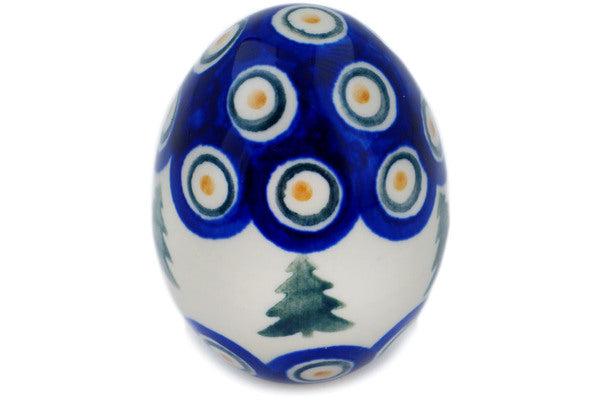 This Peacock Pines 3" Egg Figurine was handmade and hand decorated in Boleslawiec, Poland by skilled artisans according to old traditional methods. This Polish stoneware is microwave, dishwasher, freezer, and oven safe up to 480°F. It does not contain lead or cadmium. It is part of the Peacock Pines Collection.