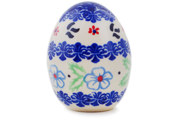 This Sweet Day 3" Egg Figurine was handmade and hand decorated in Boleslawiec, Poland by skilled artisans according to old traditional methods. This Polish stoneware is microwave, dishwasher, freezer, and oven safe up to 480°F. It does not contain lead or cadmium. It is part of the Sweet Day Collection.