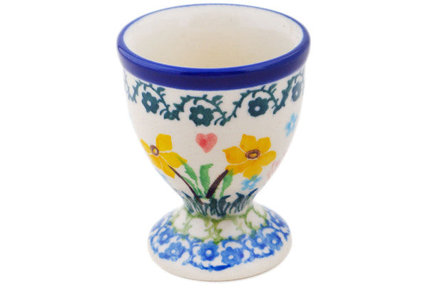This Hopping In Love 2" Egg Holder was handmade and hand decorated in Boleslawiec, Poland by skilled artisans according to old traditional methods. This Polish stoneware is microwave, dishwasher, freezer, and oven safe up to 480°F. It does not contain lead or cadmium. It is part of the Hopping In Love Collection.