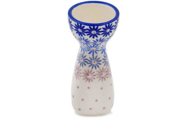 This Calm Radiance 5" Egg Holder was handmade and hand decorated in Boleslawiec, Poland by skilled artisans according to old traditional methods. This is a Polish pottery Signature Unikat, which means that it has been hand painted with both sponges and brushes and it is signed by the artist who painted it. Unikat pieces are the most intricate works of art. Larger Unikat items take hours of very careful work to finish. This Polish stoneware is microwave, dishwasher, freezer, and oven safe up to 480°F. It does not contain lead or cadmium. It is part of the Calm Radiance Collection.