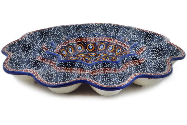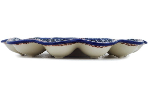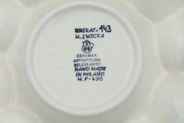 This Brown Beauty 11" Egg Plate was handmade and hand decorated in Boleslawiec, Poland by skilled artisans according to old traditional methods. This is a Polish pottery Signature Unikat, which means that it has been hand painted with both sponges and brushes and it is signed by the artist who painted it. Unikat pieces are the most intricate works of art. Larger Unikat items take hours of very careful work to finish. This Polish stoneware is microwave, dishwasher, freezer, and oven safe up to 480°F. It does not contain lead or cadmium. It is part of the Brown Beauty Collection.
