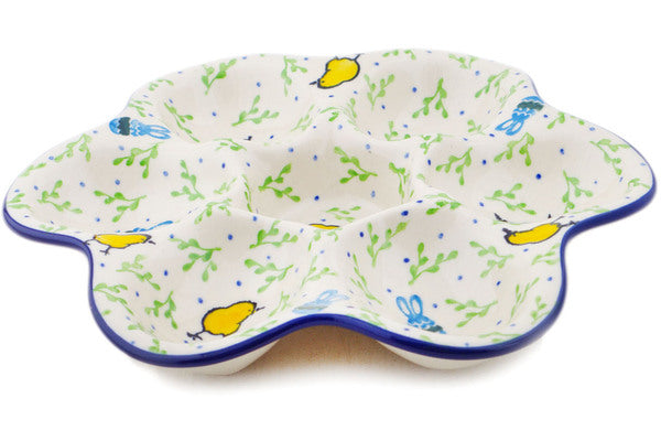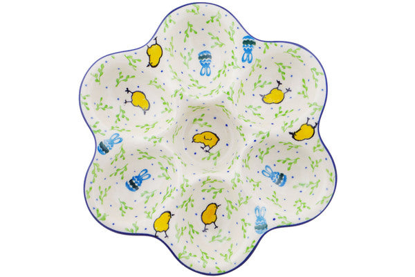 This Easter Day 8" Egg Plate was handmade and hand decorated in Boleslawiec, Poland by skilled artisans according to old traditional methods. This Polish stoneware is microwave, dishwasher, freezer, and oven safe up to 480°F. It does not contain lead or cadmium. It is part of the Easter Day Collection.