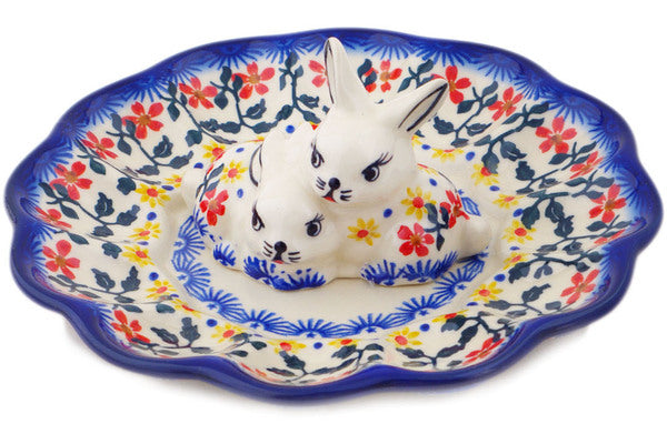 This Red Sunflower 8" Egg Plate was handmade and hand decorated in Boleslawiec, Poland by skilled artisans according to old traditional methods. This Polish stoneware is microwave, dishwasher, freezer, and oven safe up to 480°F. It does not contain lead or cadmium. It is part of the Red Sunflower Collection.