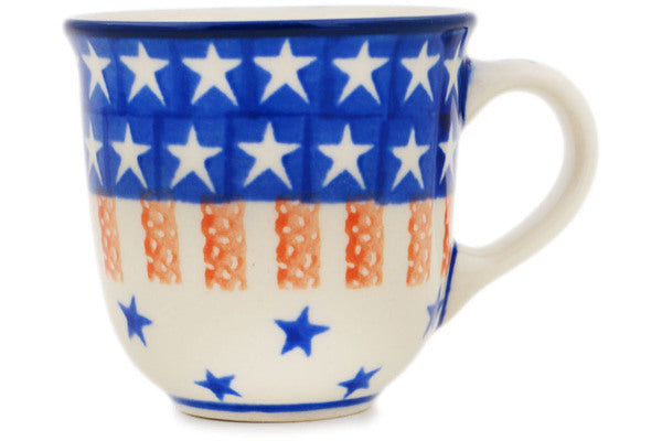 This Classic Americana 2 oz Espresso Cup was handmade and hand decorated in Boleslawiec, Poland by skilled artisans according to old traditional methods. This Polish stoneware is microwave, dishwasher, freezer, and oven safe up to 480°F. It does not contain lead or cadmium. It is part of the Classic Americana Collection.