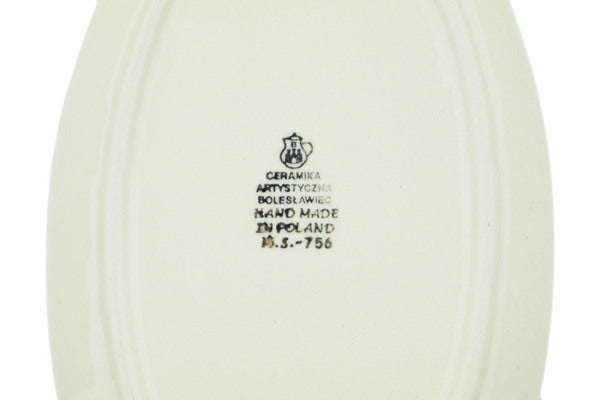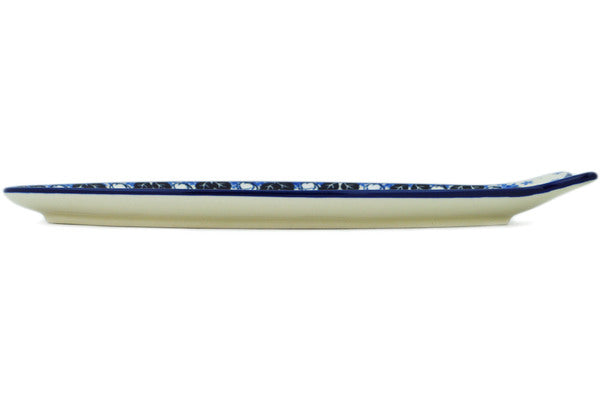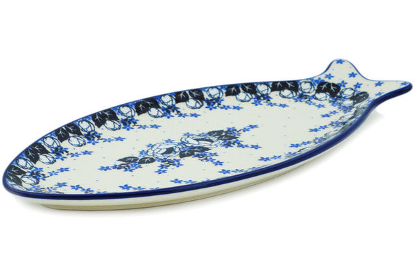 This Flowers At Dusk 12" Fish Shaped Platter was handmade and hand decorated in Boleslawiec, Poland by skilled artisans according to old traditional methods. This Polish stoneware is microwave, dishwasher, freezer, and oven safe up to 480°F. It does not contain lead or cadmium. It is part of the Flowers At Dusk Collection.