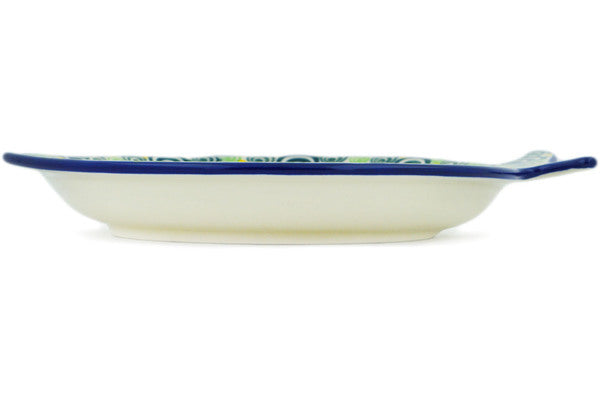This Radiant Rounds 9" Fish Shaped Platter was handmade and hand decorated in Boleslawiec, Poland by skilled artisans according to old traditional methods. This Polish stoneware is microwave, dishwasher, freezer, and oven safe up to 480°F. It does not contain lead or cadmium. It is part of the Radiant Rounds Collection.