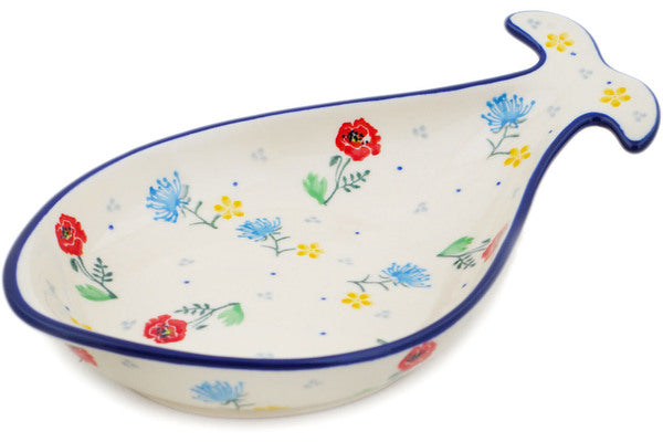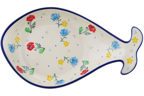 This Spring Is Coming 9" Fish Shaped Platter was handmade and hand decorated in Boleslawiec, Poland by skilled artisans according to old traditional methods. This Polish stoneware is microwave, dishwasher, freezer, and oven safe up to 480°F. It does not contain lead or cadmium. It is part of the Spring Is Coming Collection.