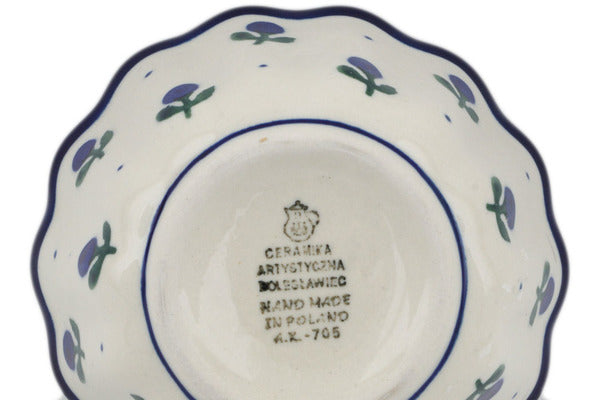 This Blue Buds 4" Fluted Bowl was handmade and hand decorated in Boleslawiec, Poland by skilled artisans according to old traditional methods. This Polish stoneware is microwave, dishwasher, freezer, and oven safe up to 480°F. It does not contain lead or cadmium. It is part of the Blue Buds Collection.